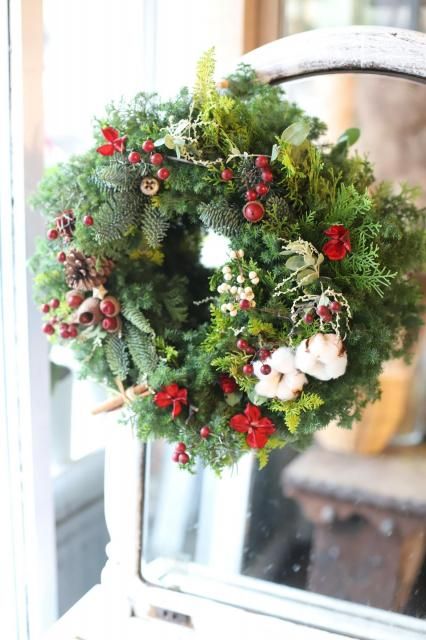 グリーンの他につける飾りの実やオーナメントで雰囲気がかなり変わるので、自分好みにシックにも、可愛くも、クリスマス感たっぷりにもできます。