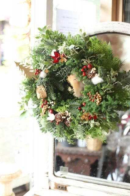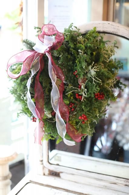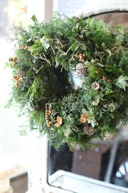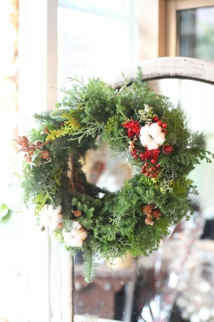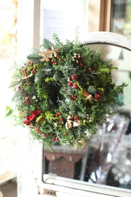 生の針葉樹の香りたっぷりのクリスマスリースです。