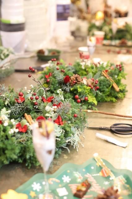 *商品写真は昨年の生徒さんが作られたものです。リースのデザインは各自お好きな実や飾りをつけていただきます。